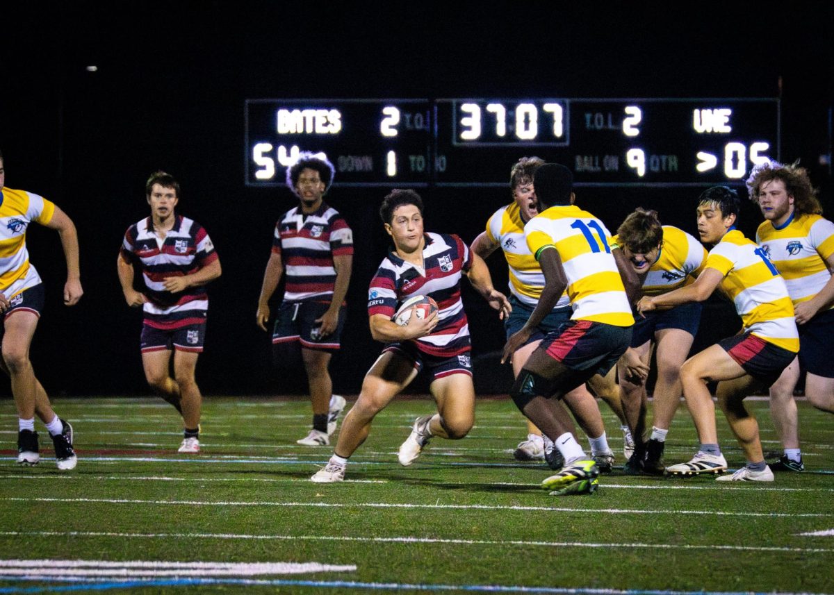 On October 3, 2025, Bates Men’s Rugby played University of New England (UNE). Bates loaned seven players to UNE. Final score: 28 to 0 with Bates taking the victory.